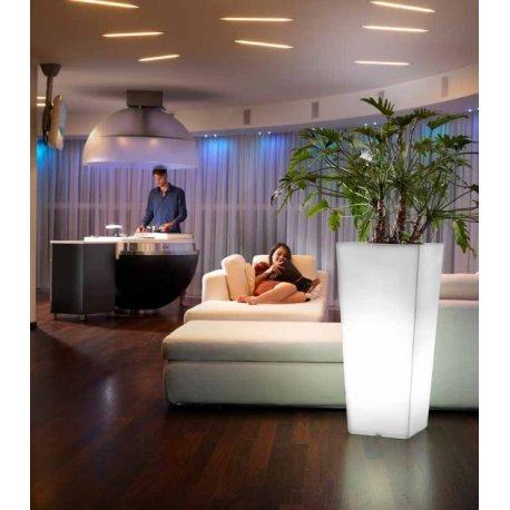 Più che un vaso, il Chache-Pot Genesis quadrato alto con luce risulta un vero elemento di arredo. Questa versione si differenzia dal modello classico per la presenza dell'illuminazione interna.