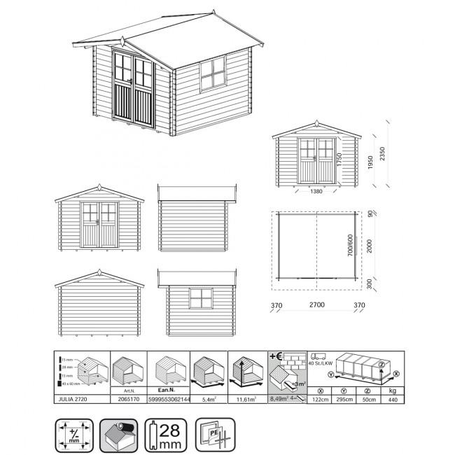 Casetta da giardino JULIA in pannelli di legno di abete.