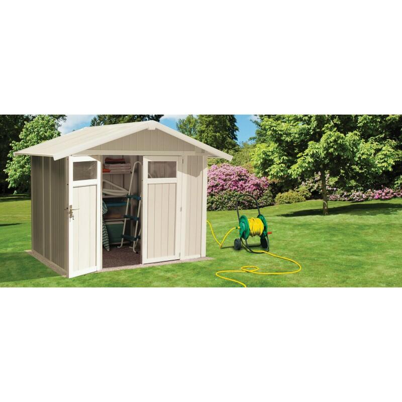 Casetta in pvc con ferritoie, per qualsiasi esigenza in giardino. Ottimale isolamento dalle condizioni esterne, imballo compatto e di facile trasporto ed assemblaggio, garanzia di durata nel tempo.