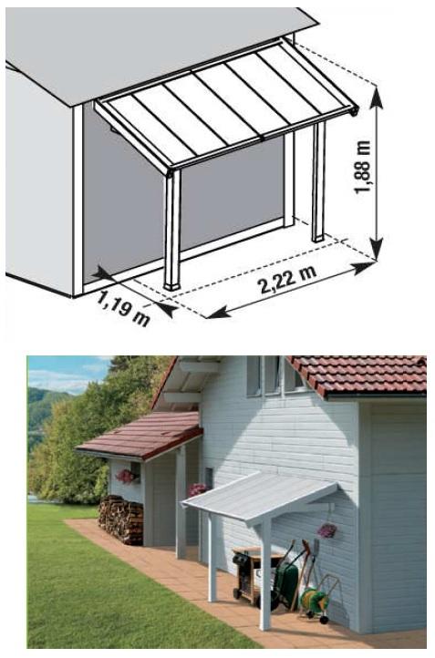 La tettoia permette di creare una zona riparata aggiuntiva al vostro capanno da giardino o alla vostra abitazione.