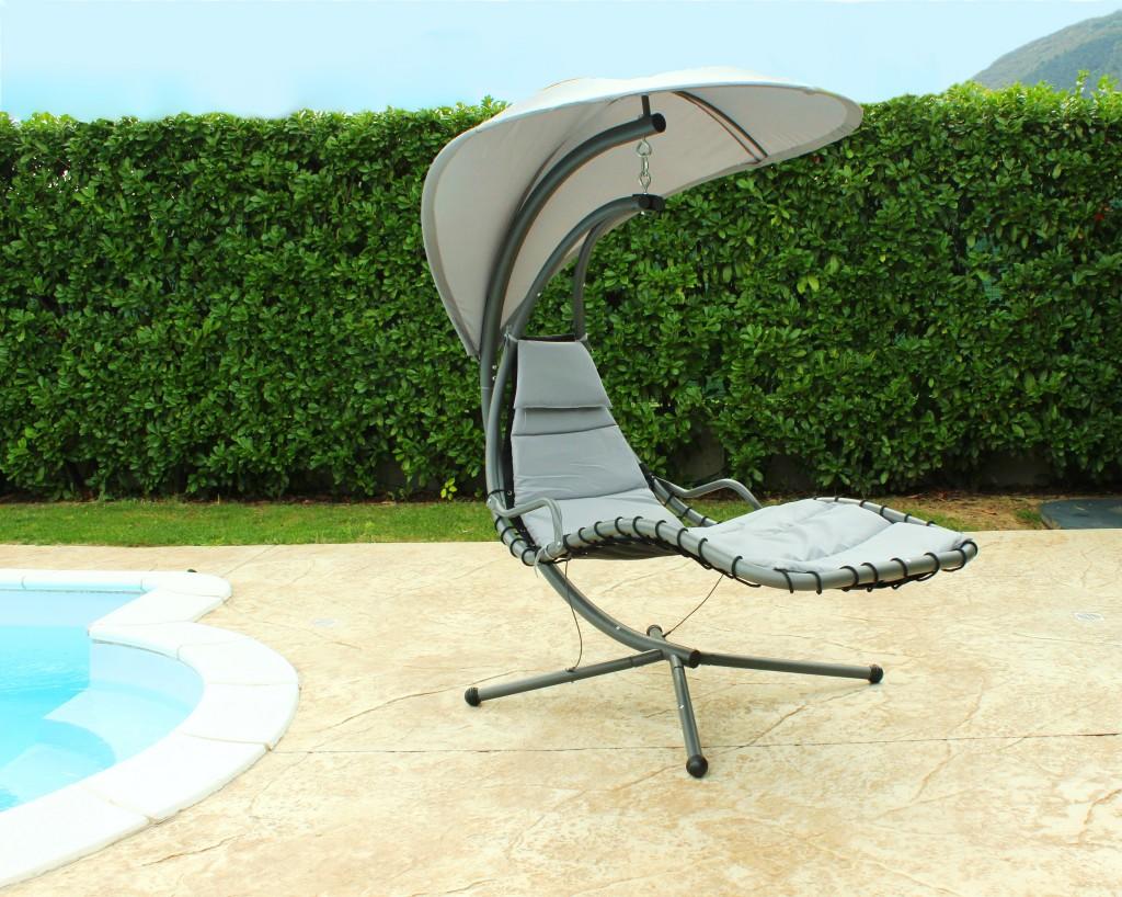 Realizzato in poliestere imbottito color GRIGIO con struttura in metallo color antracite, sarà perfetto per una siesta pomeridiana al fresco.