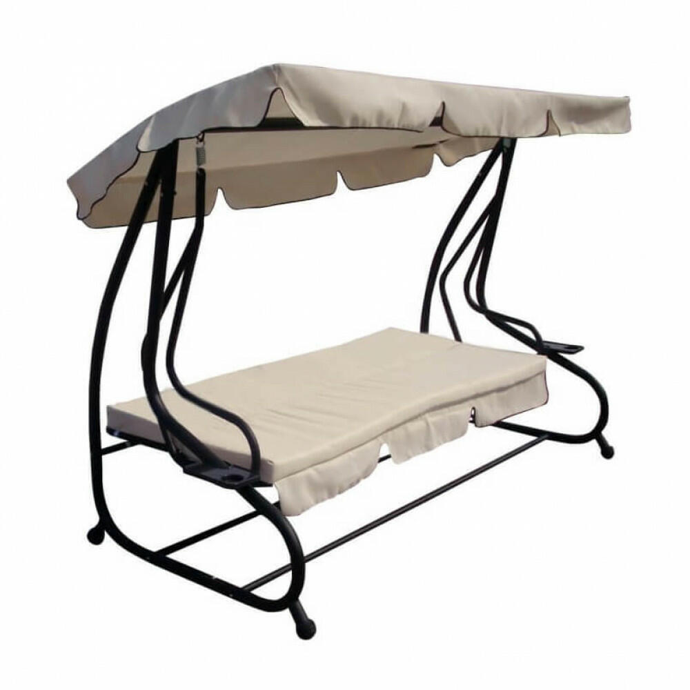 Dondolo da giardino GIMMY da 3 posti struttura neo opaco telo beige diventa DIVANO-LETTO