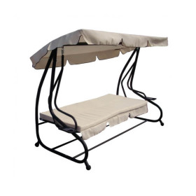 La struttura del dondolo da giardino è realizzata in acciaio verniciato color nero, mentre il materassino e la copertura di color beige sono in poliestere.