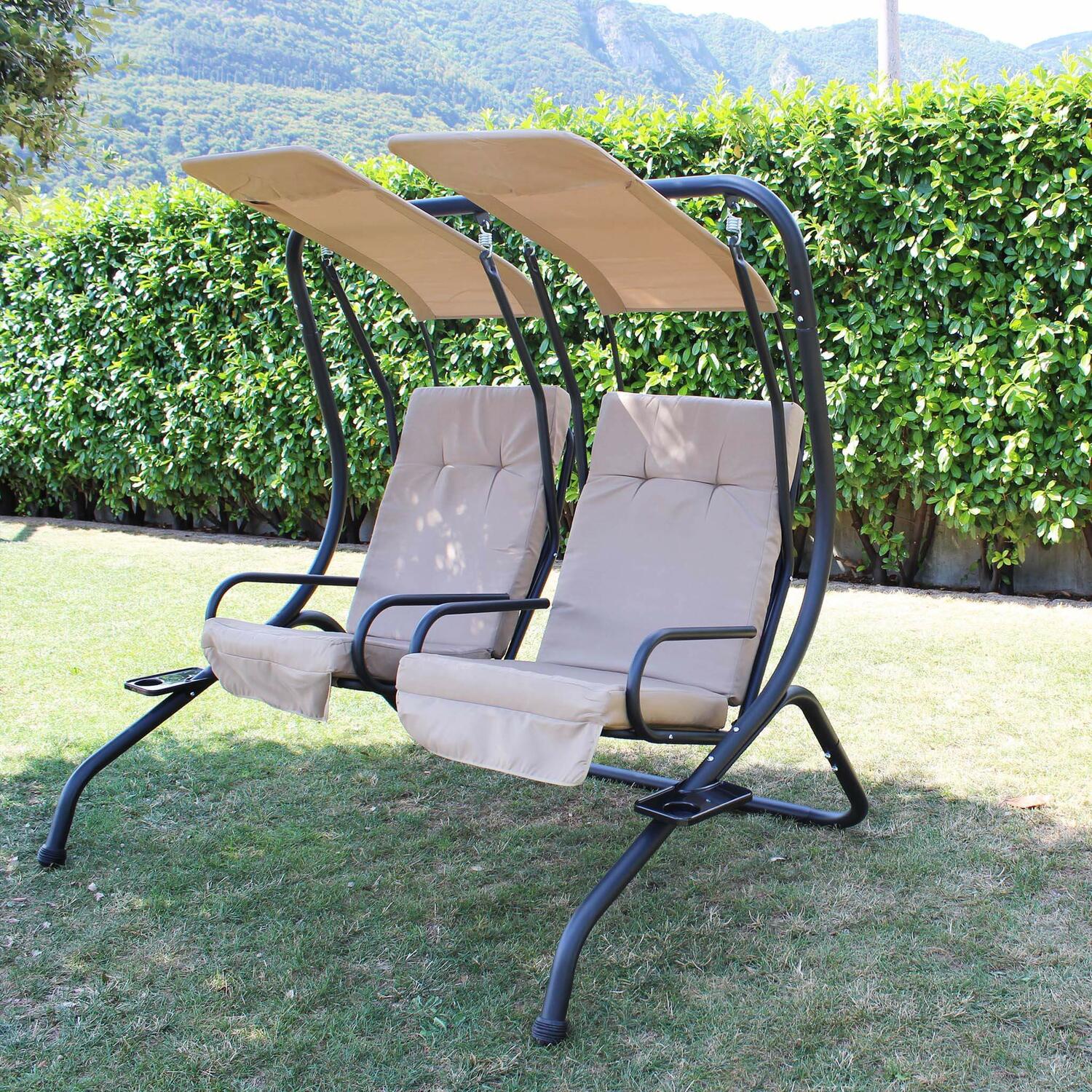 1 x Dondolo Altalena Da Giardino 2 Posti Separati Beige con Tetto Parasole e Cuscini