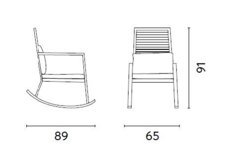 Per quanto concerne il tessuto utilizzato, la sedia a dondolo presenta uno schienale in corda su spalliera mentre struttura in alluminio nella seduta