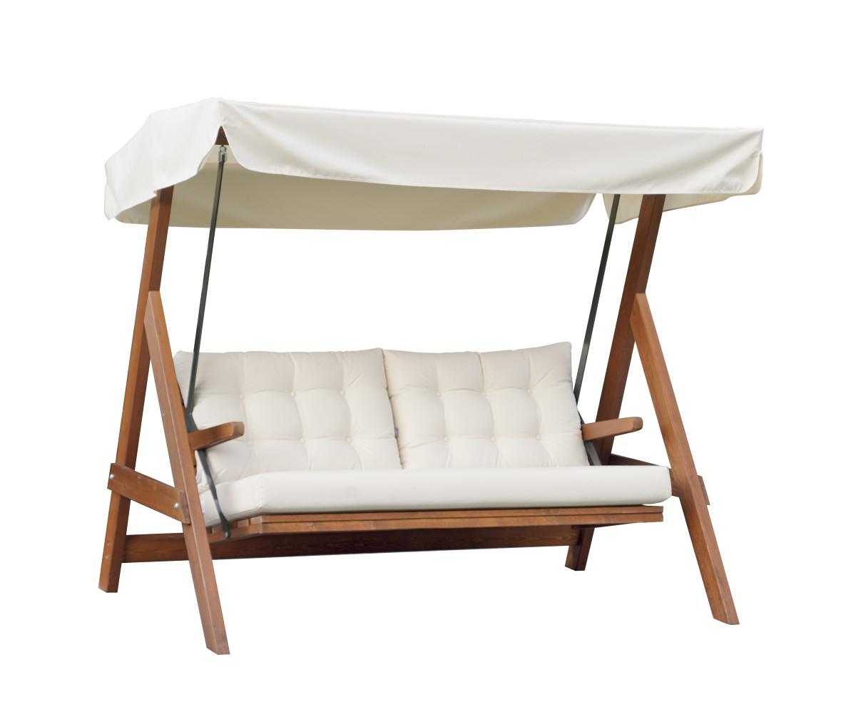 Dondolo in legno massiccio 3 posti con tessuto ecru cod SV 122