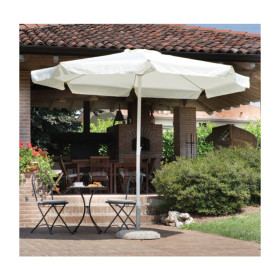 Ombrellone rotondo 5000, con tela in poliestere color ecrù, sistema a manovella, antivento con volante.