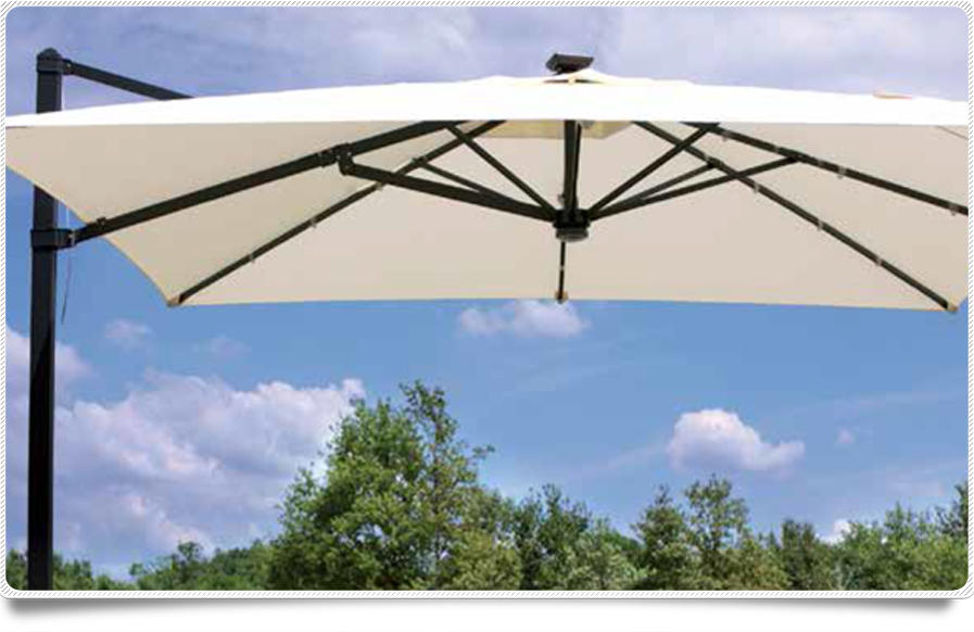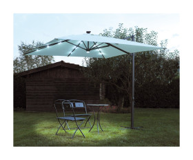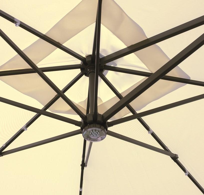 Ombrellone quadrato 3 x 3 metri con luci a led e faretto centrale alimentate da un piccolo pannello solare