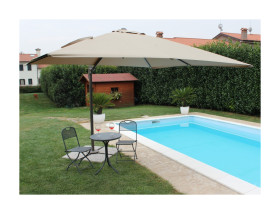 Ombrellone quadrato 2,5 x 2,5 metri a palo laterale bianco e telo di copertura ecru' e' l'ideale per un abbinamento perfetto con la nostra gamma di complementi d'arredo o set relax da esterno.