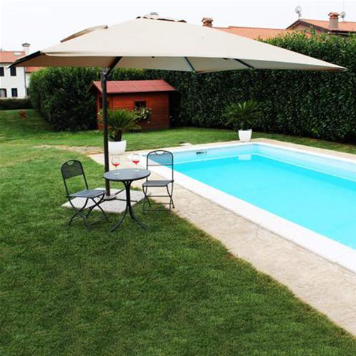 Ombrellone quadrato con palo centrale in alluminio bianco perfetto per tutti gli stili all'aperto.