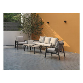 Dotato di telai in alluminio leggeri e resistenti e di un'imbottitura confortevole in poliestere di colore grigio scuro questo set da giardino è l?ideale per arredare con stile il proprio spazio esterno.