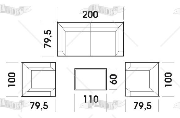 Salotto Minerva ? set composto da 1 divano, 2 poltrone, 1 tavolino ? struttura in alluminio verniciato a polvere in colore nero, corda sintetica colore grigio e cuscineria in tessuto poliestere da 230 gr colore grigio ? \r\ndivano: h. 71 x l. 200 x p. 79.5 cm\r\npoltrona: h. 71 x l. 100 x p. 79.5 cm \r\ntavolino: h. 41 x l. 110 x p. 60 cm