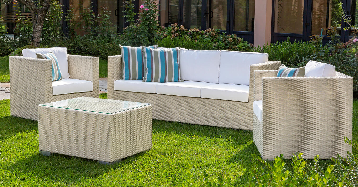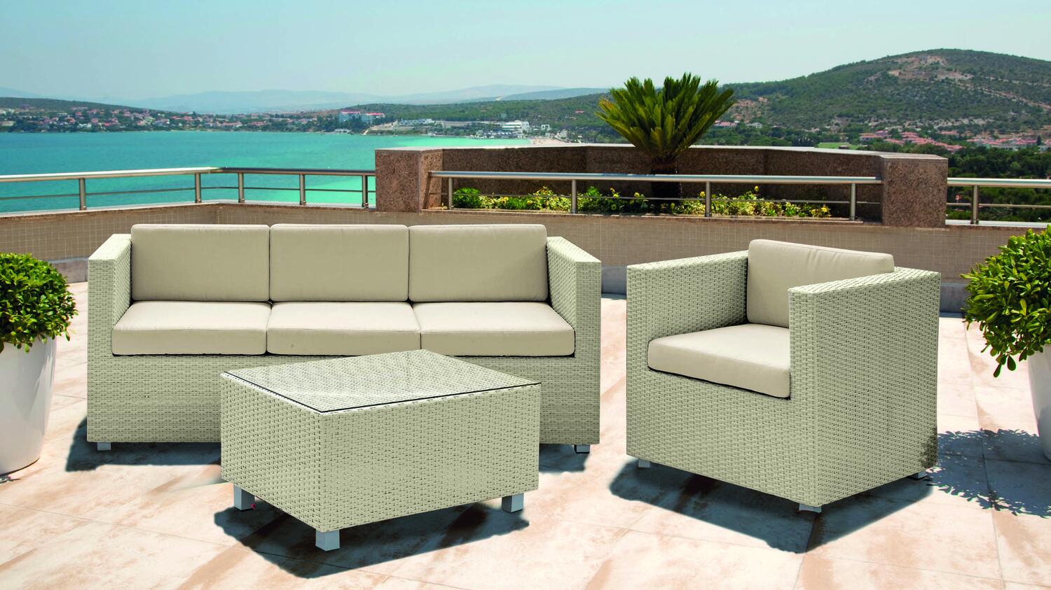 Abbina il divano San Diego alla poltrona e al tavolino della stessa linea per creare un elegante salotto per il tuo giardino o il tuo terrazzo.