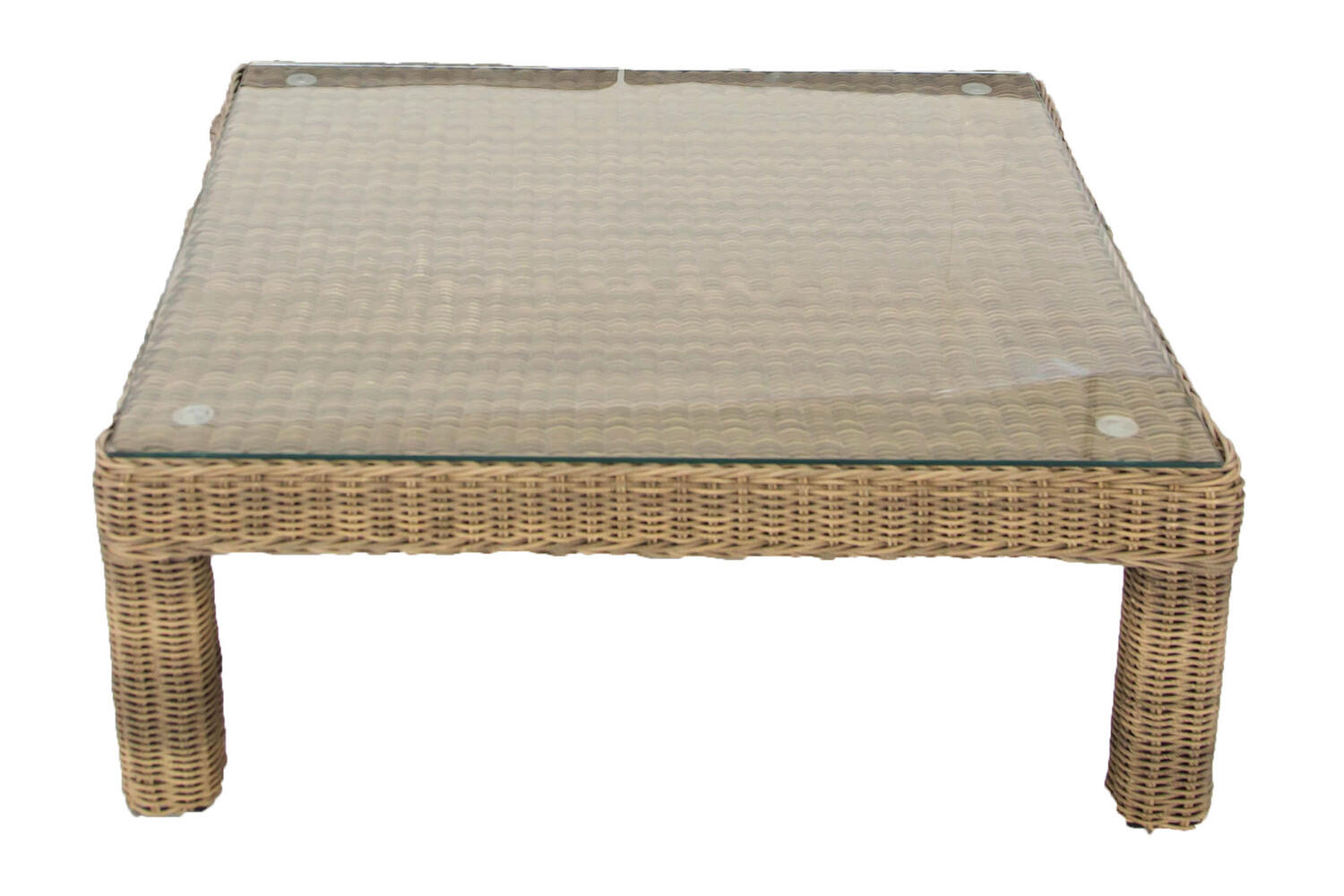 Tavolino quadrato per salotto da giardino con struttura in alluminio rivestito in midollino sintetico e piano in vetro. Questo tavolino basso, con 75 cm di lato e un?altezza di 28 cm, si abbina agli altri mobili in wicker della linea Malibu per creare un set da giardino completo per i tuoi momenti di relax in compagnia durante la bella stagione.