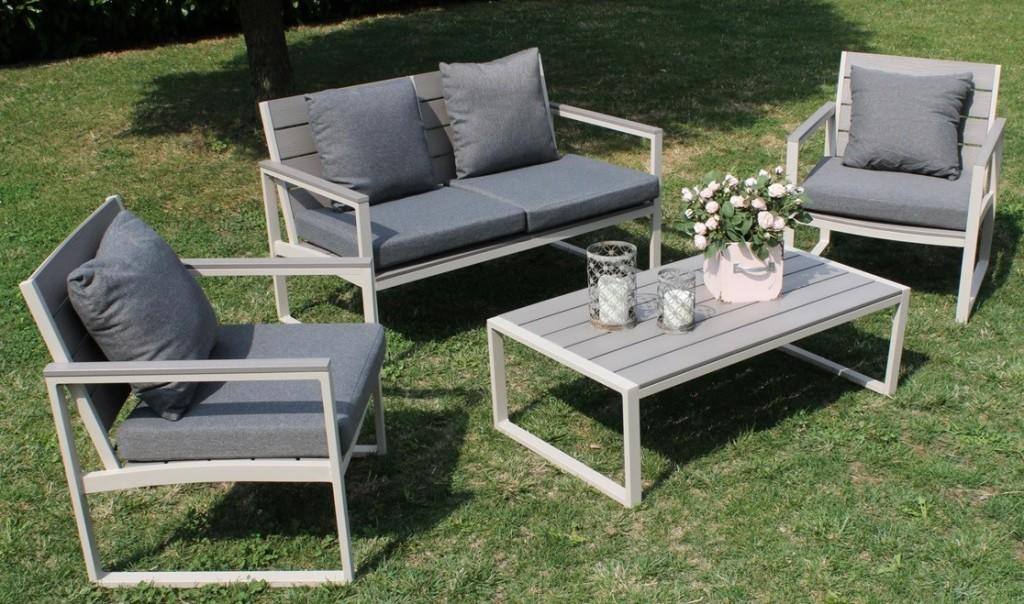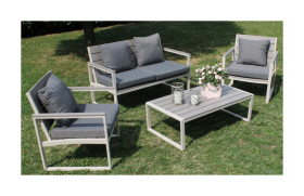 Comode poltrone e un elegante tavolo invitano a trascorre piacevoli ore insieme. Il set in alluminio e textilene piace non solo per l?eleganza ma anche per la sua lunga durata.