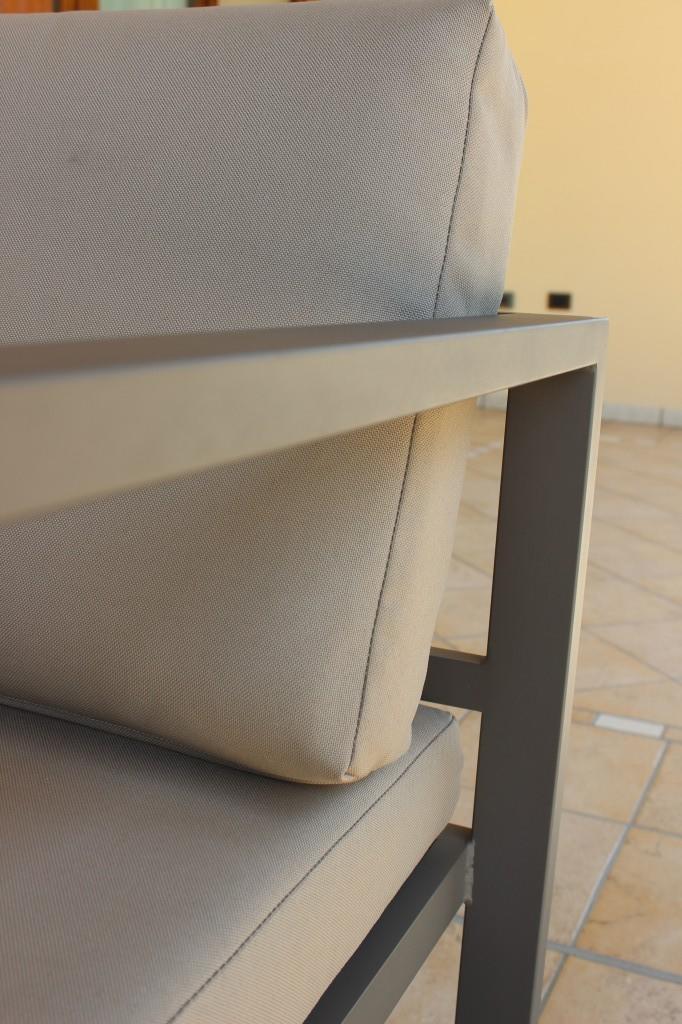 IL SALOTTO TRENTO, nella sua versione standard, è in color bianco, sia per i cuscini sia per la verniciatura dell'alluminio;