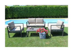 Comode poltrone e un elegante tavolo invitano a trascorre piacevoli ore insieme. Il set in alluminio e textilene piace non solo per l?eleganza ma anche per la sua lunga durata.