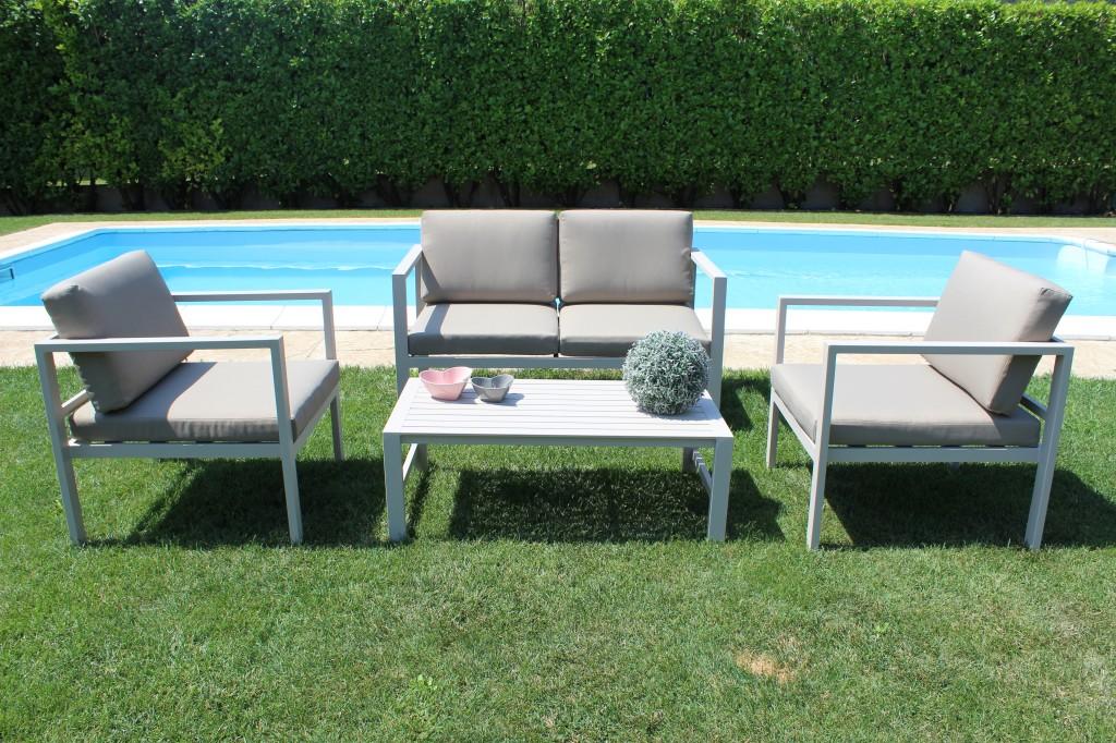 Salottino da giardino in alluminio SALOTTO TRENTO CON CUSCINI in alluminio verniciato col TORTORA