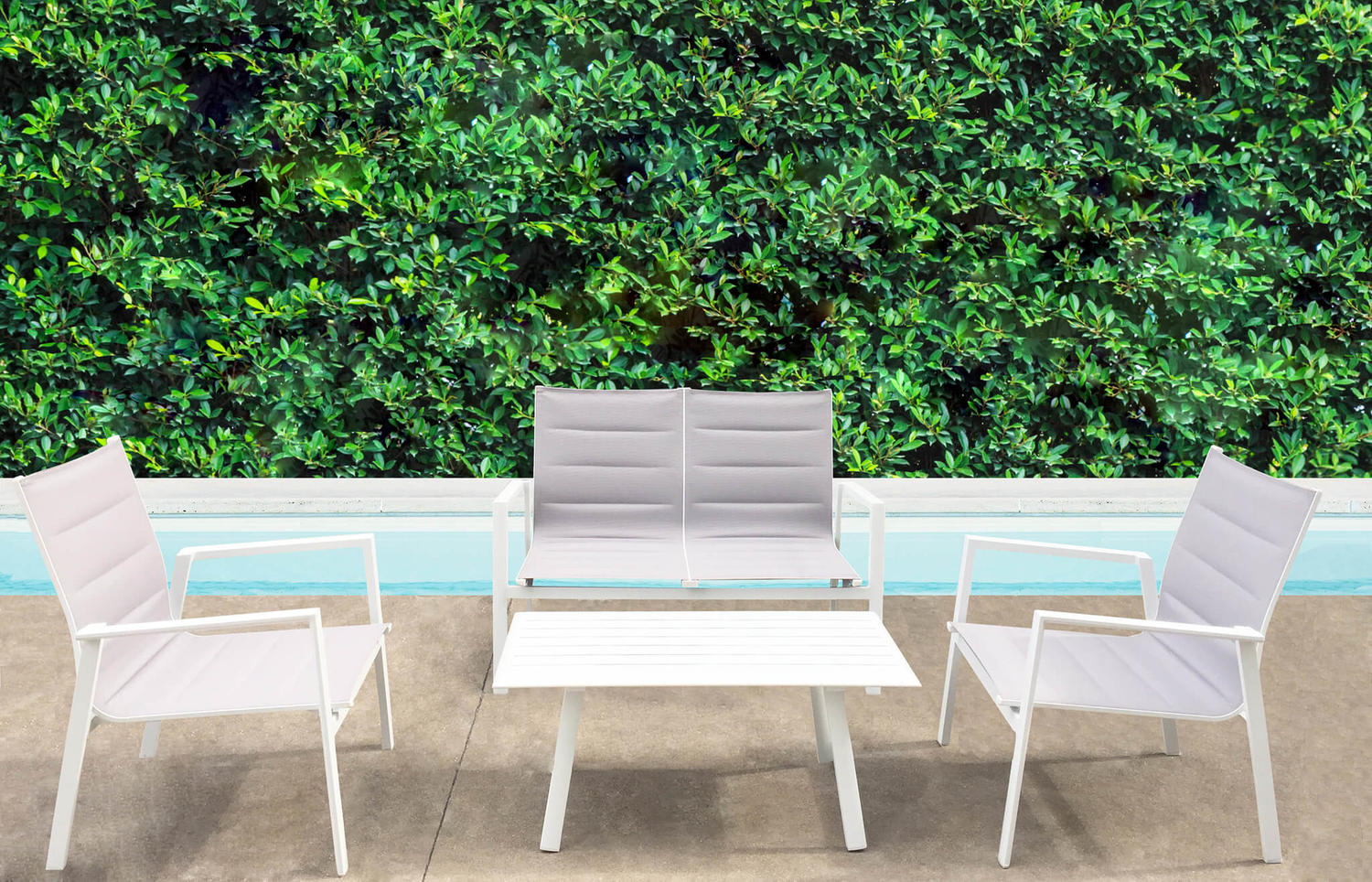 Tutto questo è possibile grazie una ricerca dei migliori materiali: la struttura in alluminio conferisce una resistenza e una duratura ineguagliabile, la rifinitura in textilene conferisce un'aspetto elegante che non stona in nessun ambiente.