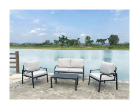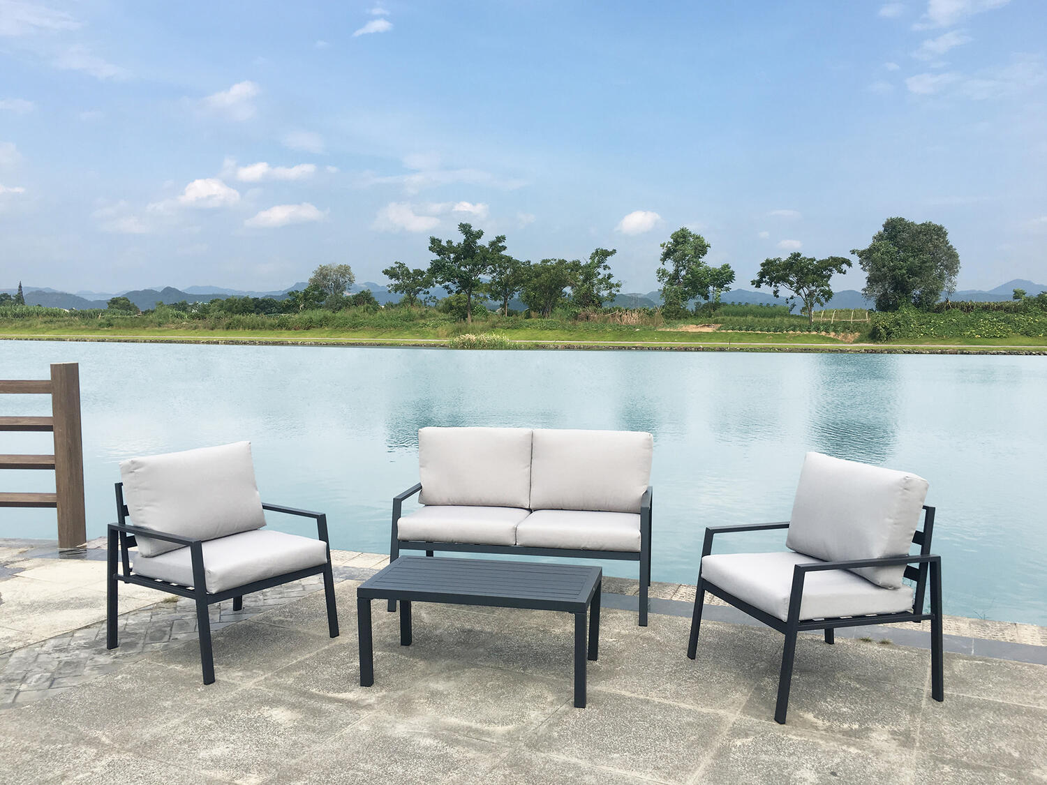 IL SALOTTO TRENTO, nella sua versione standard, è in color antracite , sia per i cuscini sia per la verniciatura dell'alluminio;