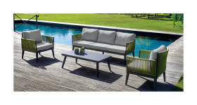 Salotto da giardino in alluminio SET NIMES LUSSO con divano 3 posti due poltrone e tavolino alluminio color ANTRACITE SET 145 corda sintetica piatta verde