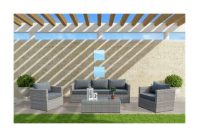 Salotto da giardino in alluminio ALBEROBELLO 3 POSTI con divano 3 posti 2 poltrone e tavolino in wicker grigio