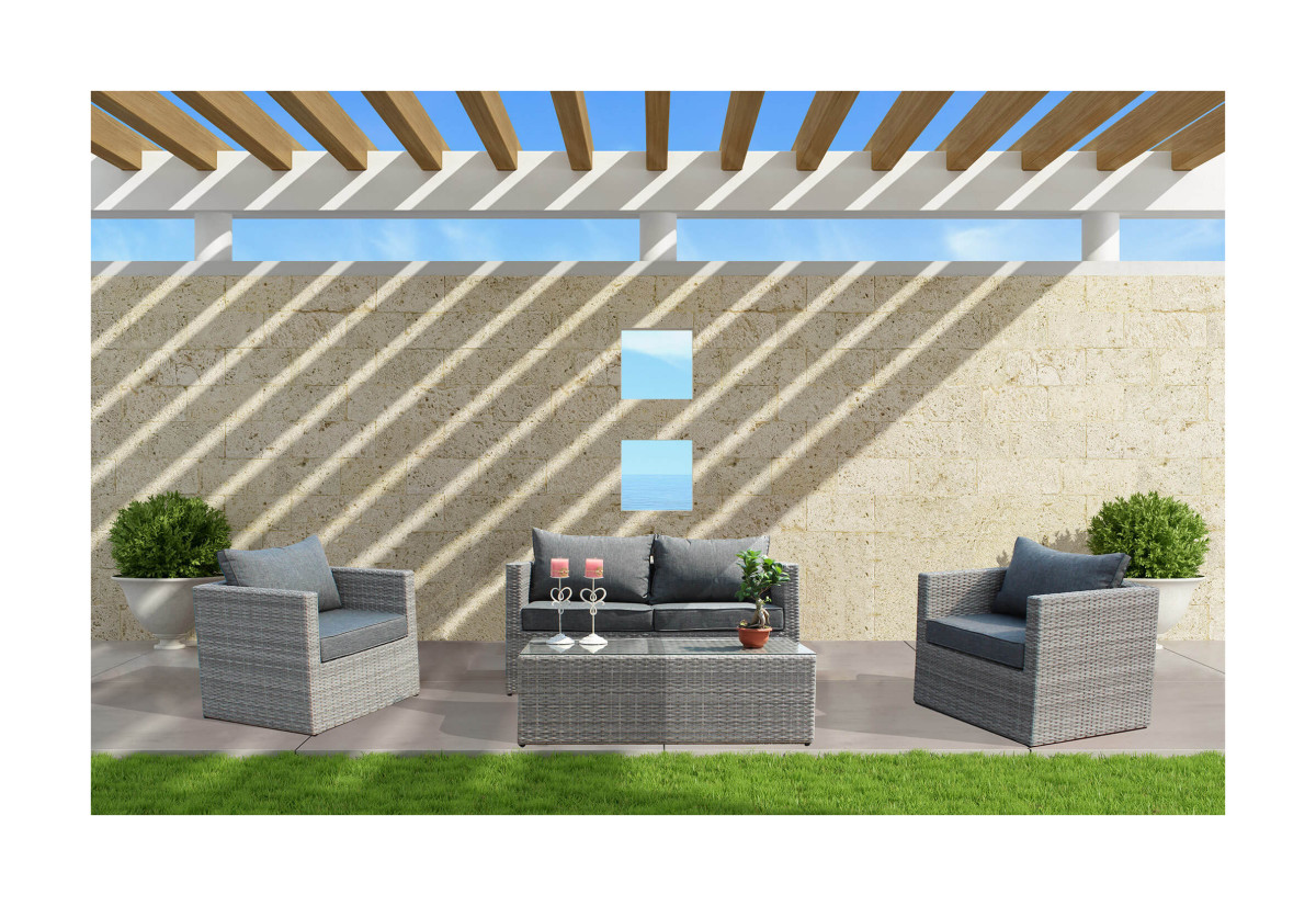 Ulteriore garanzia di qualità e durevolezza di questo set per esterni è la struttura interamente in alluminio verniciata a polveri epossidiche che, essendo altamente anticorrosive, prevengono la formazione di ruggine e il conseguente deterioramento del salotto.