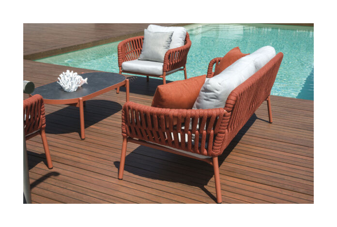 Salotto Matera in alluminio ROSSO ANTICO e corda MATTONE
