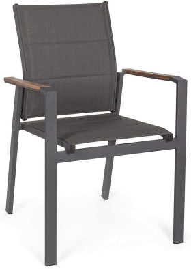La Sedia con Braccioli Kubik Antracite ? SJ61 è una scelta elegante e confortevole per il tuo spazio esterno. La struttura della sedia è realizzata in alluminio, verniciato a polvere con poliestere, che garantisce durata e resistenza agli agenti atmosferici. I braccioli della sedia presentano inserti in polywood, che aggiungono un tocco di stile e calore al design complessivo.