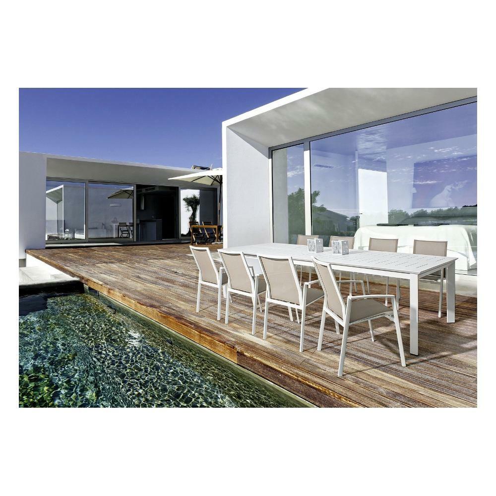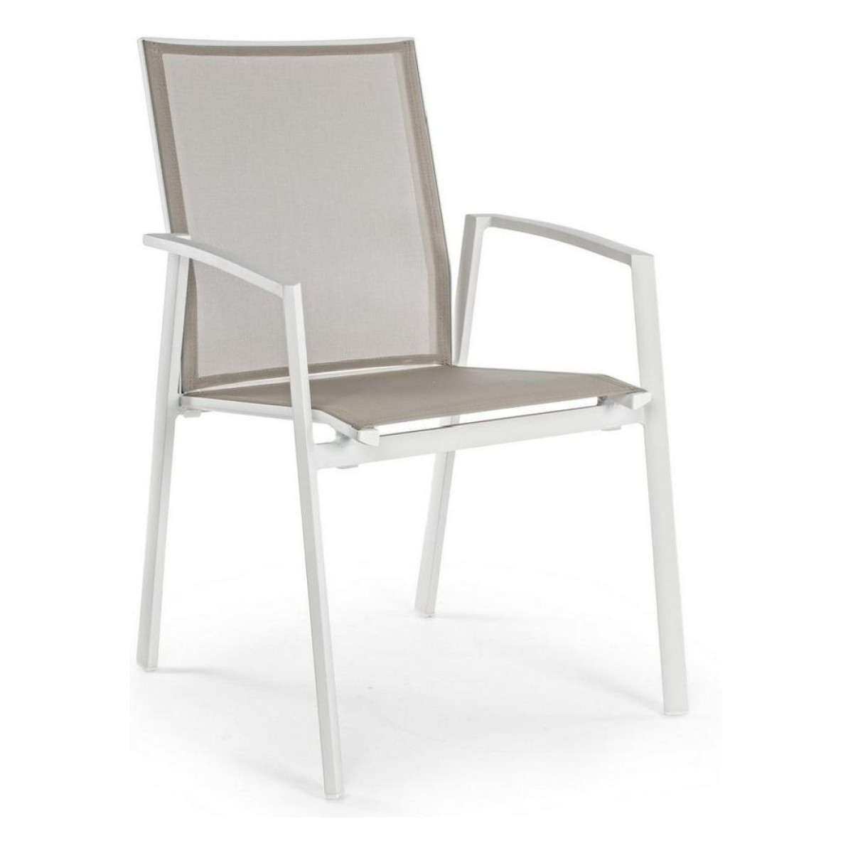 struttura in alluminio verniciato a polvere (poliestere). seduta a schienale rivestiti in textilene phifer 1x1. impilabile. imballo senza cartone. misure 57a - 57b - 87.5h - 44.5h1 - 63h2