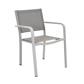 Poltrona impilabile, struttura in alluminio verniciato col. TORTORA semiopaco, seduta e schienale in textilene TORTORA