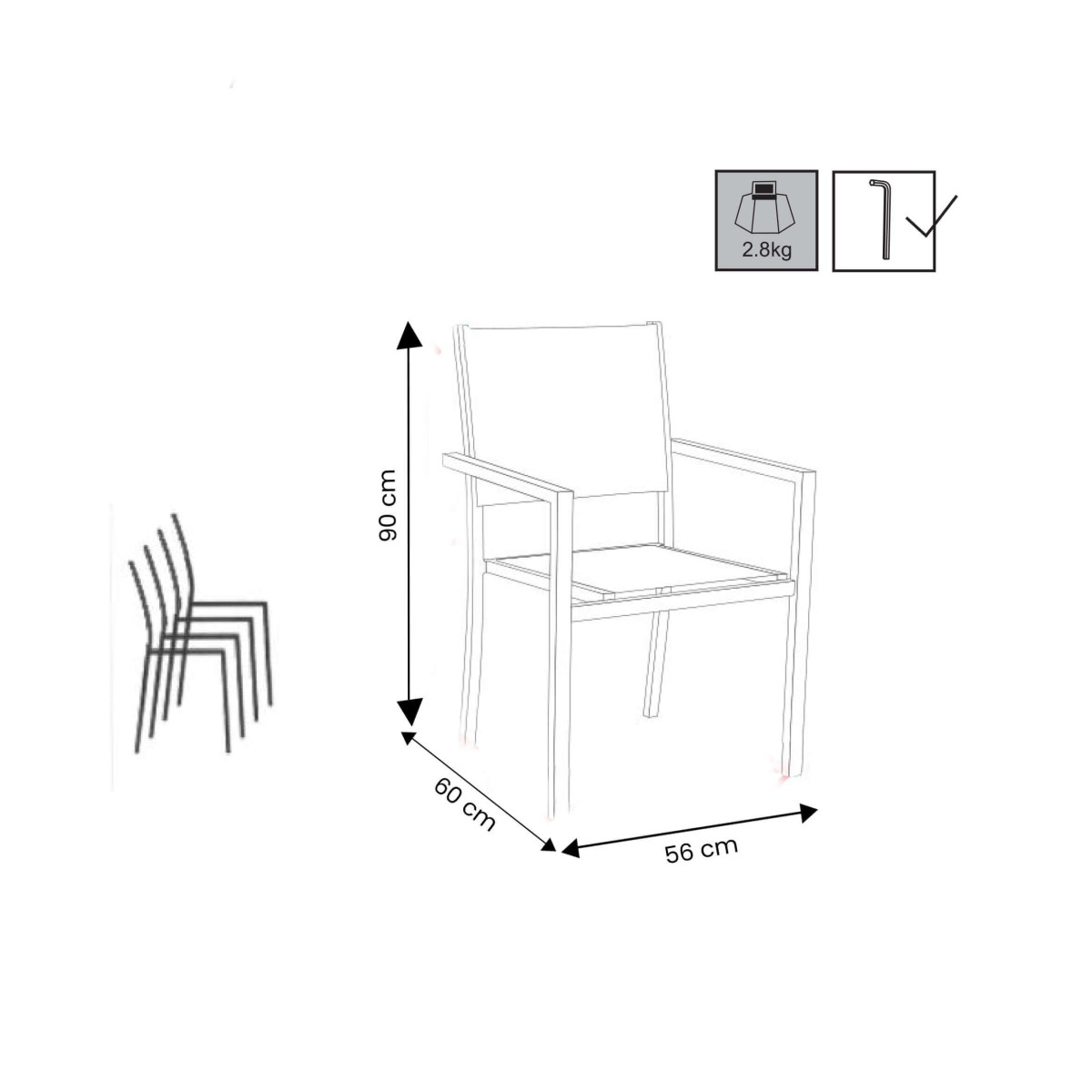 Pronto alla bella stagione? sedie con braccioli da esterno con struttura in alluminio, seduta e schienale in textilene.