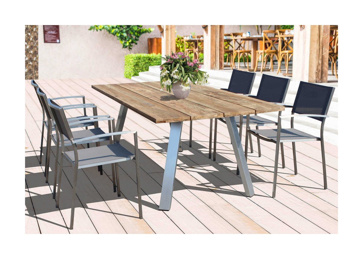 Sedute: struttura in acciaio inox schienale e seduta in textilene grigio dimensioni: cm 56 x 57 x 89 h•