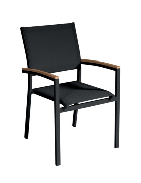 Sedia Volterra in alluminio e textilene grigio con braccioli in resin wood - impilabile