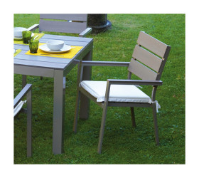 Sedia da esterno impilabile con struttura in alluminio e seduta e schienale in resin wood.