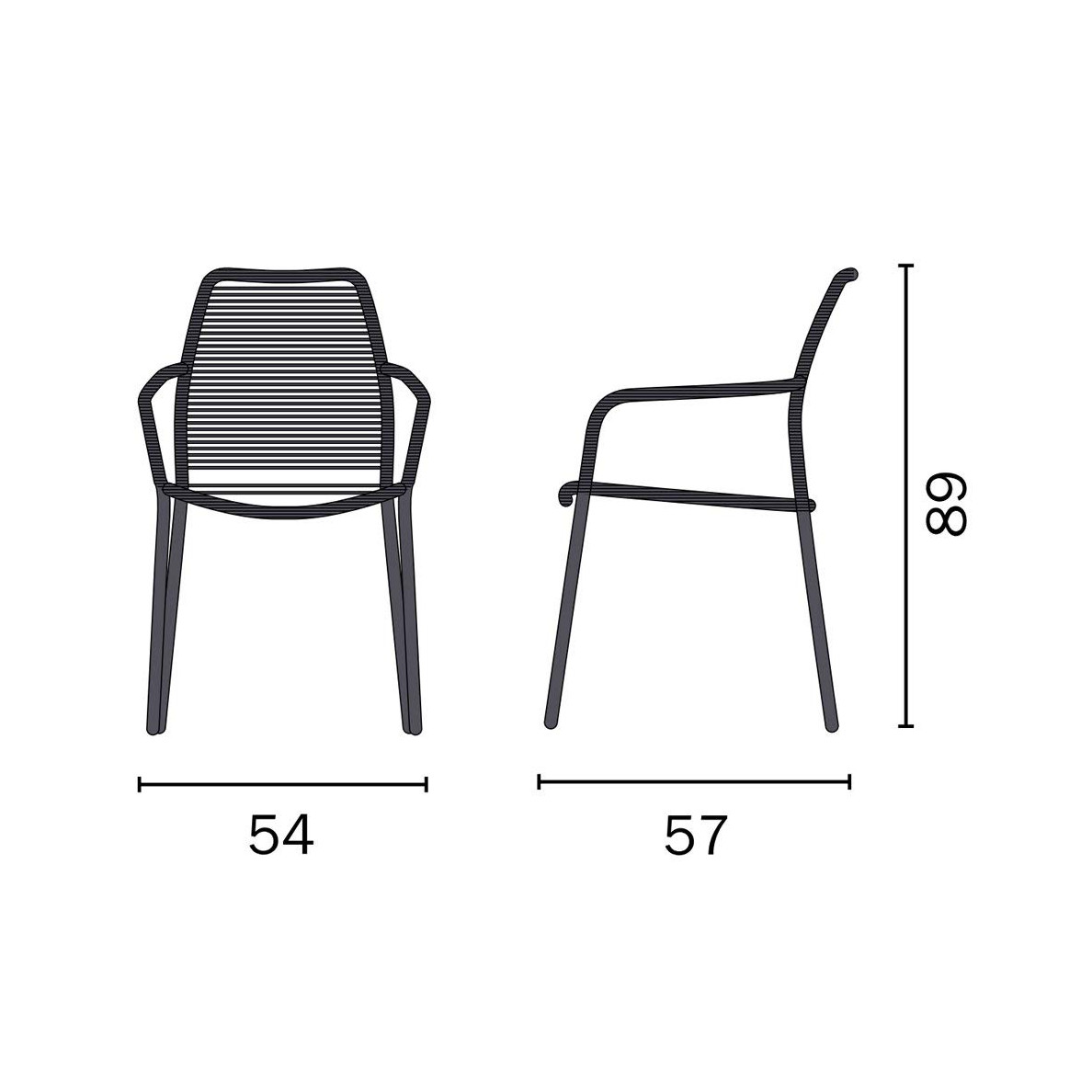 Sedia da Giardino Buccione in Ferro e corda impilabile con braccioli CHF 09