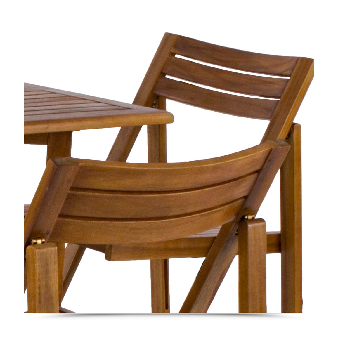 Un?ottima soluzione salvaspazio per pranzi all?aperto! Il Set Foldy è pratico ed elegante, perfetto per chi ha poco spazio. Realizzato in legno di acacia trattato a olio, è robusto e resistente, ideale per ambienti esterni come giardini e terrazze. La sua struttura pieghevole consente di riporlo facilmente durante la stagione invernale.