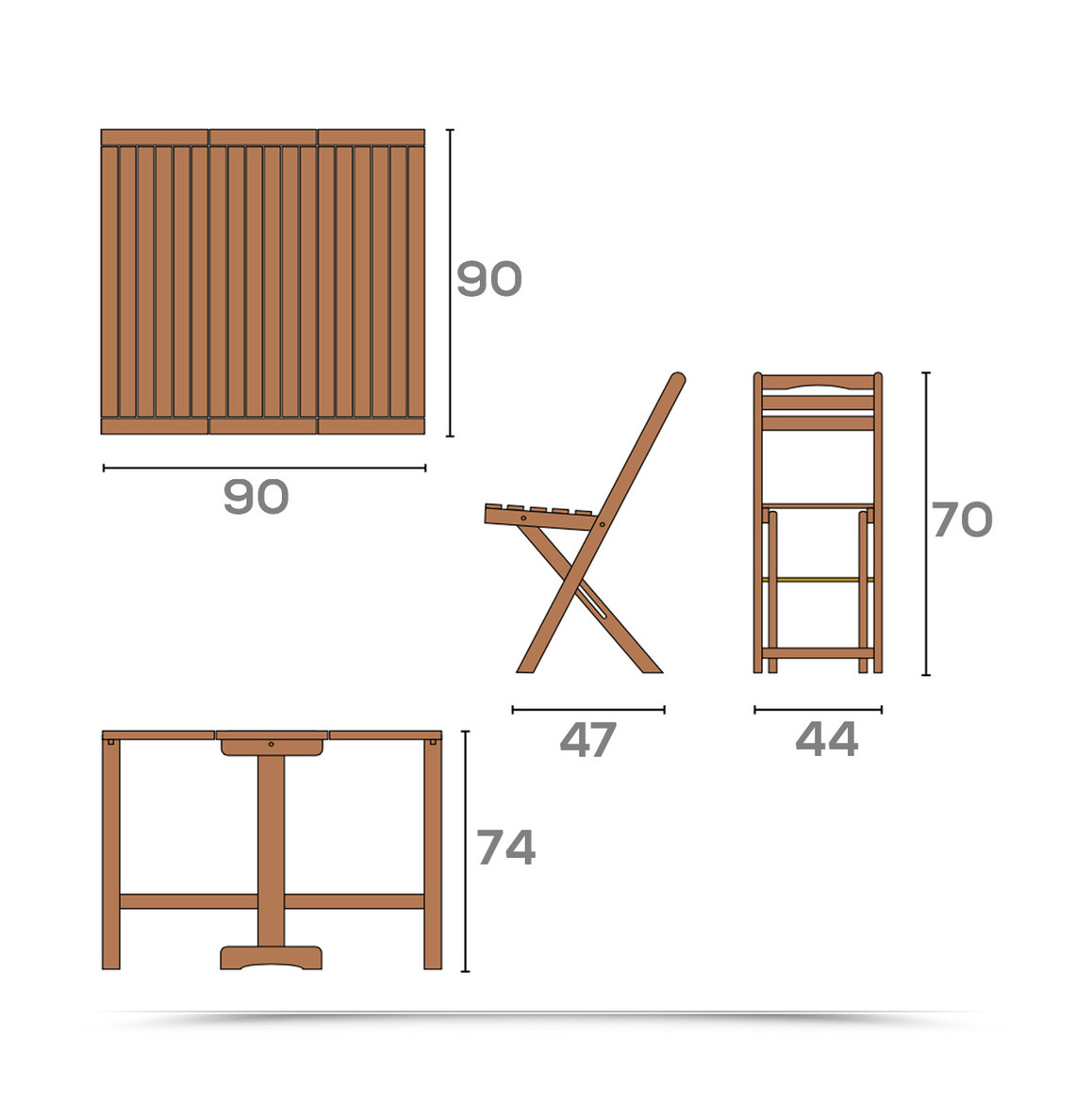 Tavolo pieghevole 90?90 cm: occupa poco spazio quando chiuso e ospita comodamente fino a 4 persone.