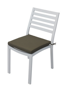 Questa coppia di poltrone da giardino in alluminio semiopaco arreda la tua zona pranzo all'aria aperta con uno stile nuovo e funzionale. A rendere ancora più comoda e confortevole la seduta un cuscino colore marrone.