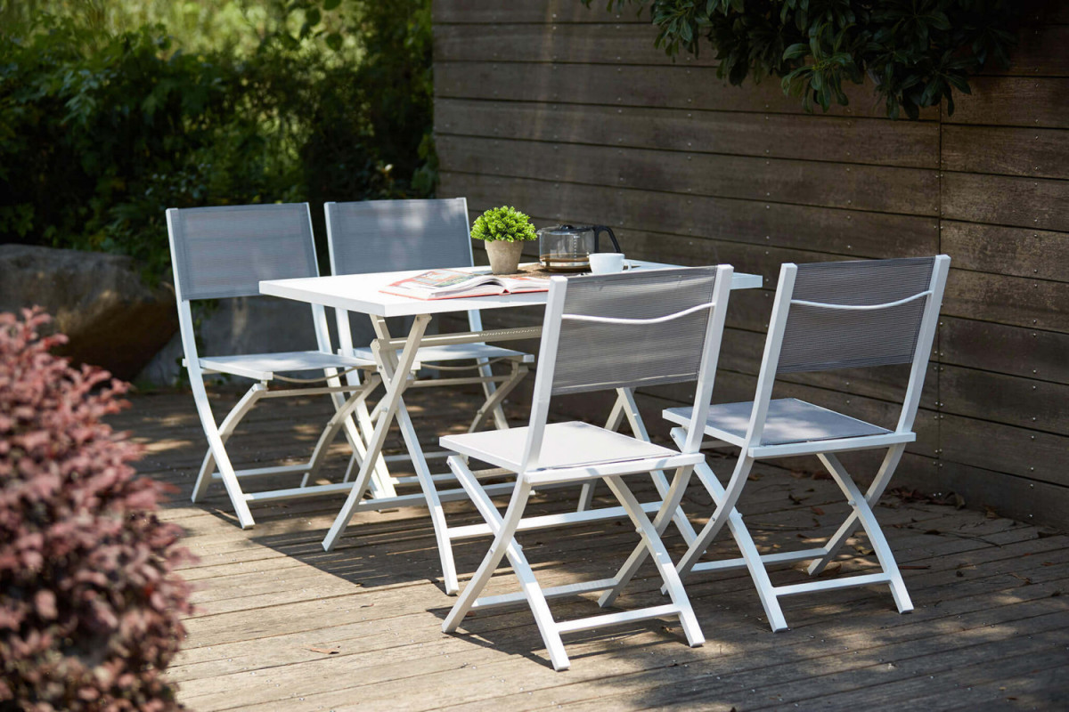 Struttura in alluminio BIANCO, TAUPE o ANTRACITE seduta e schienale in textilene Dimensioni: cm 58 x 46 x 85 h