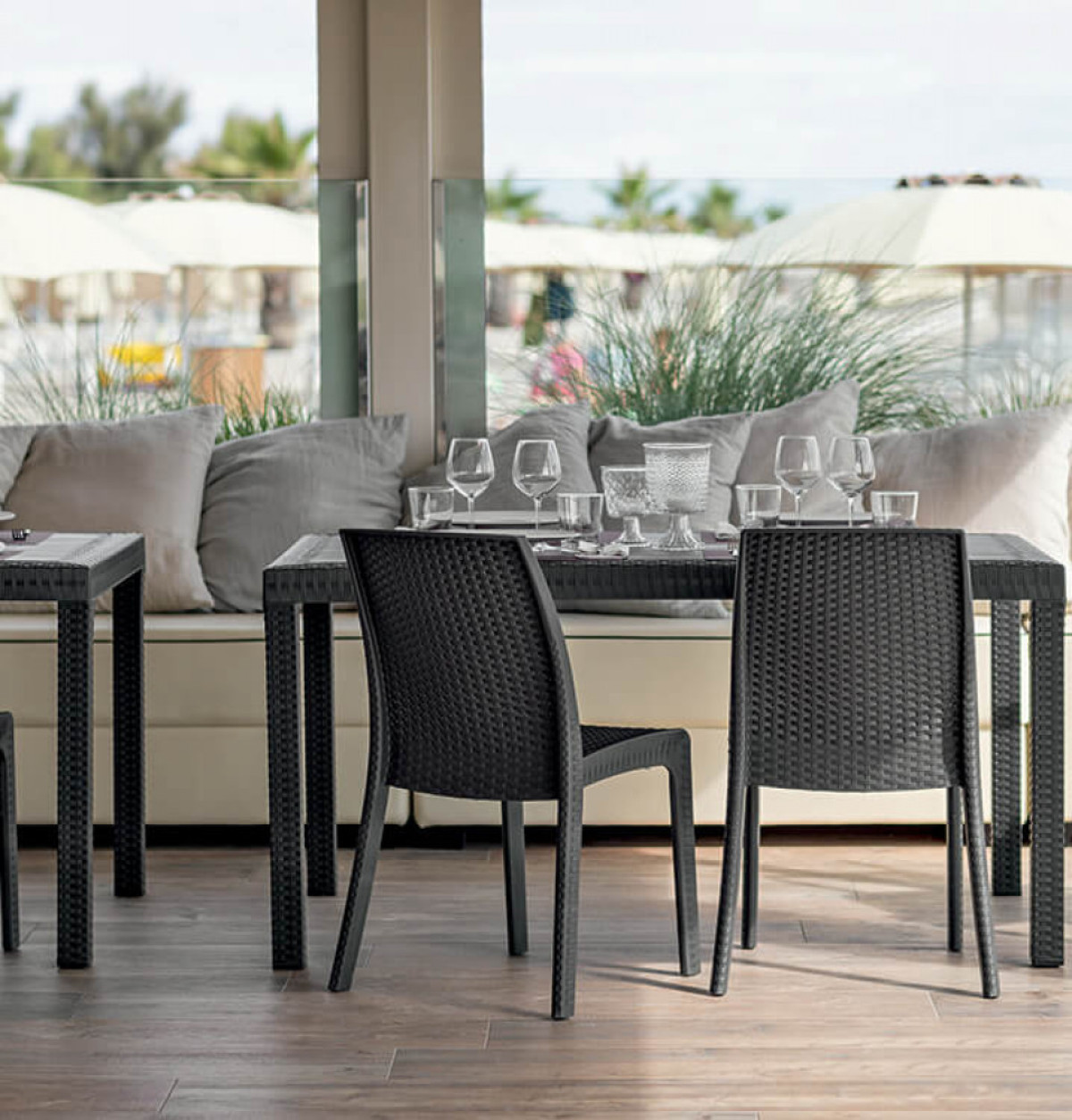 Struttura in plastica stampata, wicker ANTRACITE o TAUPE MARRONE o BIANCO Dimensioni: cm 47 x 59 x 86 h