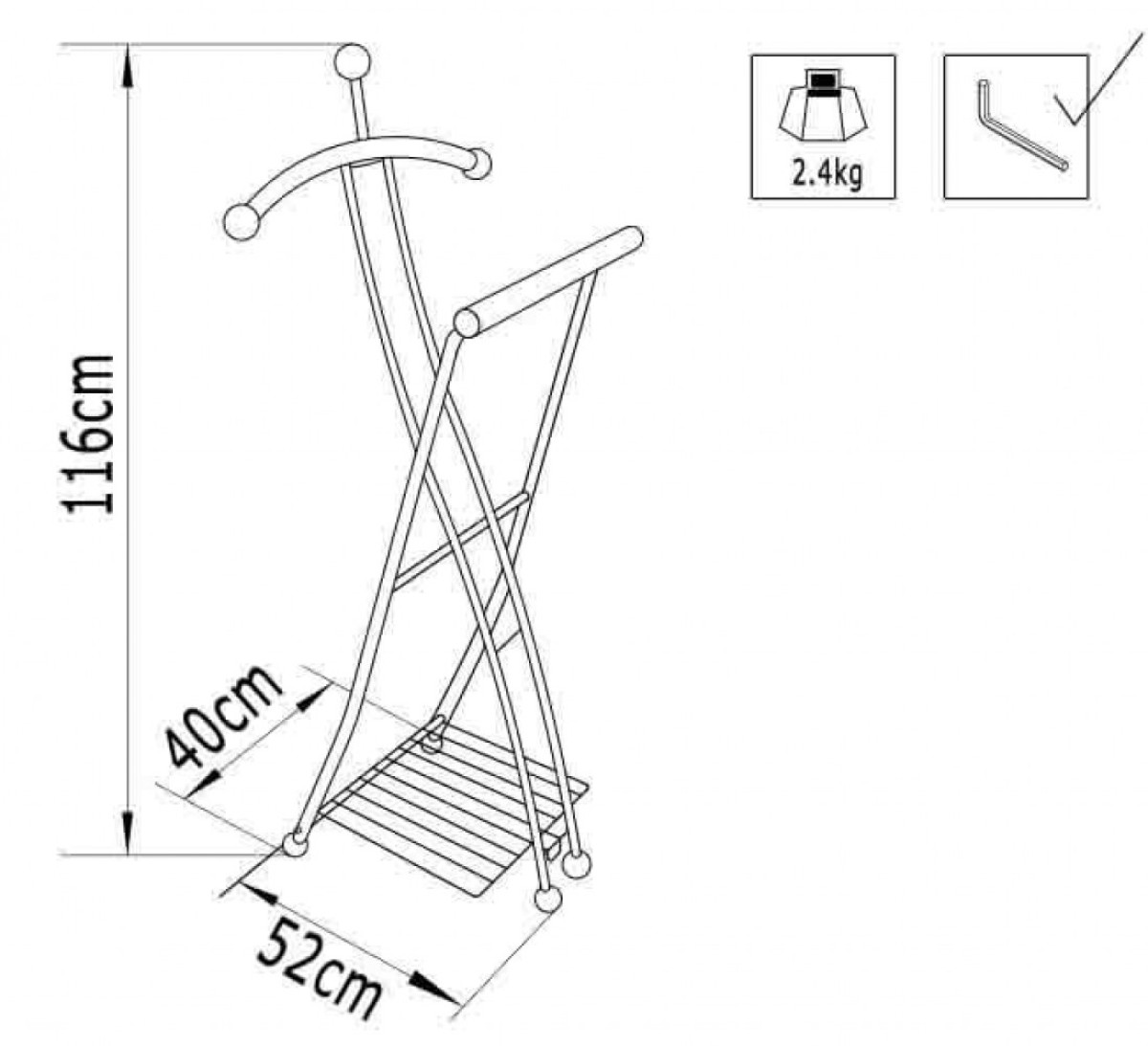 Omino porta abiti in metallo verniciato grigio tubo: Ø 19 x 0,8 mm Dimensioni: cm 52 x 40 x 116