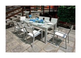 Tavolo da esterno in alluminio color legno sbiancato.