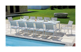 Il tavolo rettangolare allungabile si estende da 200 fino a 300 cm e può ospitare da 6 a 10 persone. L'alluminio verniciato a polvere è leggero e resistente ed è il materiale ideale per le giornate all'aria aperta in compagnia all'ombra di un gazebo o di un ombrellone con palo LATERALE.