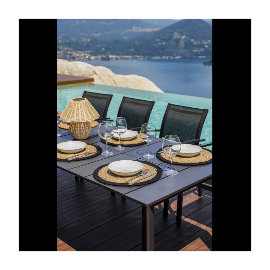 Elegante, pratico e moderno, grazie al sistema allungabile è adatto per ogni tipo d?occasione, anche quelle più numerose. Tramite l'allunga centrale permette di passare da un piano lungo 165 cm a 250 cm per far così posto fino a 8-10 persone. Realizzato in alluminio color antracite, con il suo stile lineare si adatta inoltre ad ogni tipo di outdoor garantendo massima resistenza e versatilità per l'uso esterno. Completalo con un set di sedie dello stesso stile, come la VIAREGGIO o la VOLTERRA con comodi braccioli. Le trovi sul nostro catalogo.