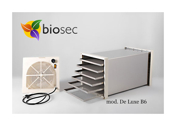 Biosec De Luxe è dedicato a chi non ama scendere a compromessi, Interamente realizzato in acciaio inox, un essiccatore di qualità professionale perfetto per agli appassionati più esigenti o per i professionisti del cibo. L?essiccatore è progettato per generare una flusso orizzontale continuo d?aria calda, in modo da raggiungere tutti i cestelli all?interno, grazie a questa tecnica l?essiccazione avviene in modo omogeneo. Un prodotto essiccato sotto i 42° rimane inalterato a lungo, mantenendo intatte le sue proprietà e le caratteristiche organolettiche, e si presta quindi ad una conservazione a lungo termine.