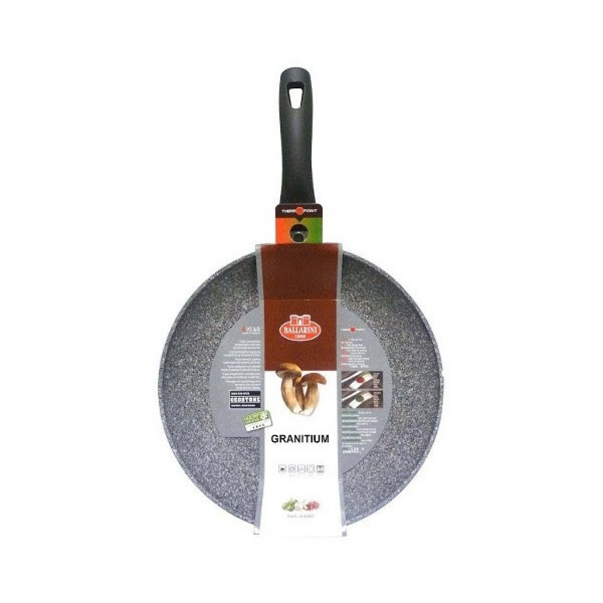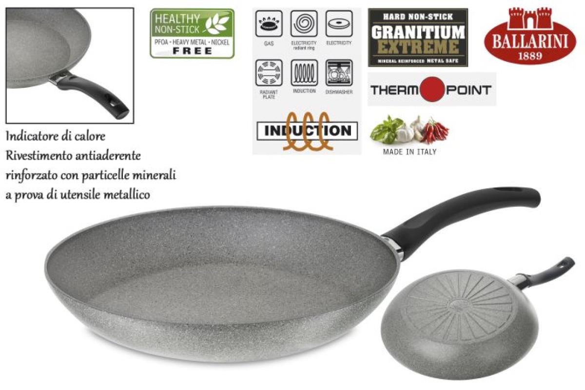 La sua superficie di cottura è realizzata con piccole particelle di pietra unite che la convertono nella padella più resistente del mercato. Granitium si riscalda rapidamente e mantiene il calore per più tempo.La superficie in pietra è dieci volte più resistente e dura dieci volte più a lungo dei normali rivestimenti antiaderenti.Quindi non brucia non scolorisce e non si squama.La padella Granitium è perfetta perché può raggiungere alte temperature.E? la migliore padella in assoluto. Esalta il vero sapore del cibo. Con Granitium potete cucinare molluschi frutti di mare cozze ostriche? senza il rischio di rovinarla. Potete anche usare un cucchiaio di metallo senza graffiarla.Potrete cucinare in modo più salutare infatti non occorre aggiungere olio o altri grassi.Con le normali padelle i succhi naturali del cibo fuoriescono e rimangono in superficie.Granitium cuoce il cibo esternamente mantenendone i succhi all?interno. Così la carne e il pesce sono più teneri succosi e gustosi. Le verdure sono più croccanti e cotte alla perfezione.?