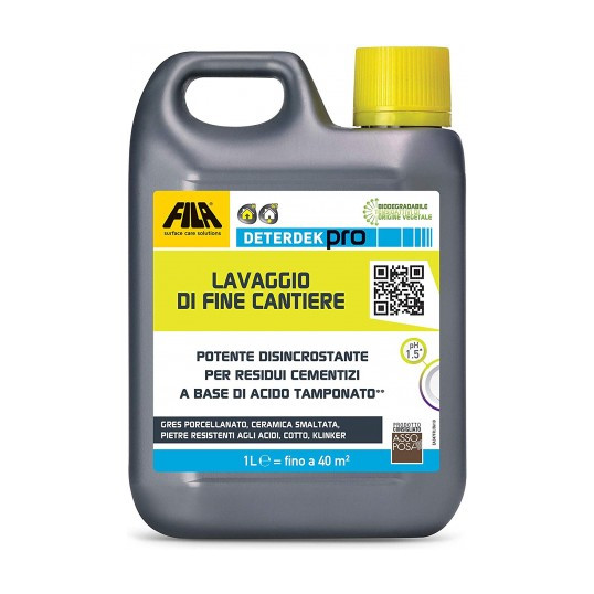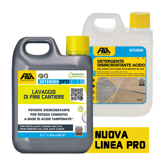 DETERDEK PRO è un disincrostante per cotto, gres porcellanato, ceramica smaltata, pietre resistenti agli acidi, clinker.