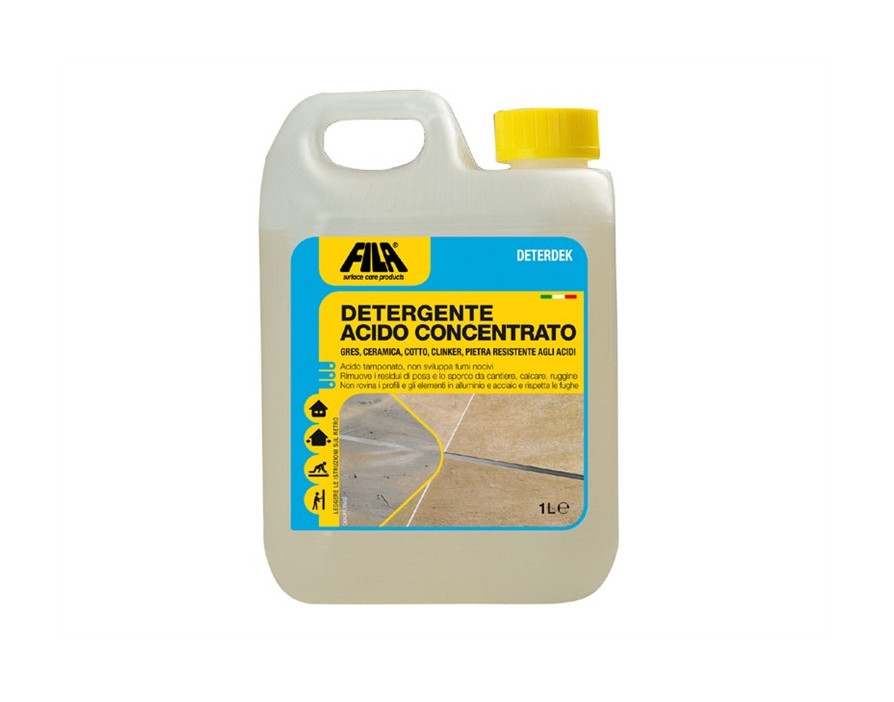 DETERDEK è un disincrostante per cotto, gres porcellanato, ceramica smaltata, pietre resistenti agli acidi, clinker.