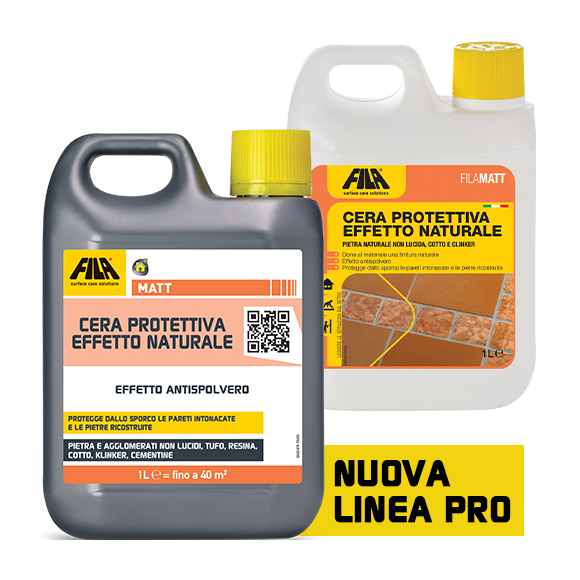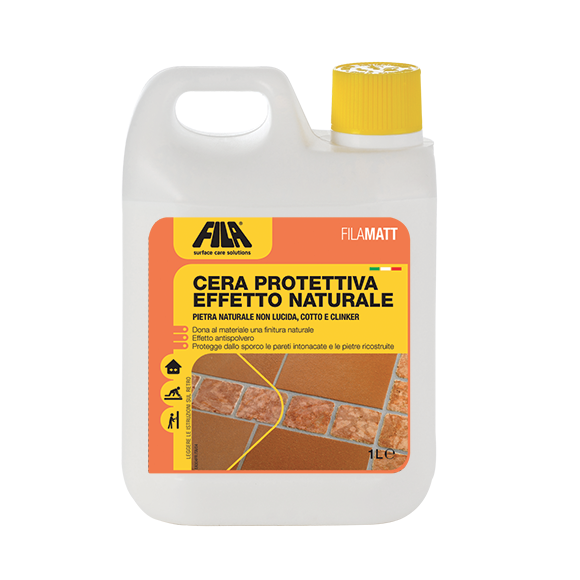 FILAMATT è una cera a effetto opaco per pavimenti in cotto, marmo, marmo anticato, pietre, agglomerati, sassi o ciottoli, clinker.